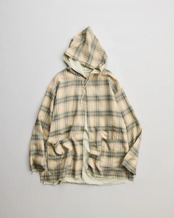 1970年代のUS鉄鋼労働者のワークジャケットとUKコートから着想を得 て再構築。綾織りの柔らかなドレープとエンザイム加工による自然なフェード感が魅 力のコットンツイル、甘撚りで低密度に織ることで軽やかさと膨らみを引き出した ウールファブリック。