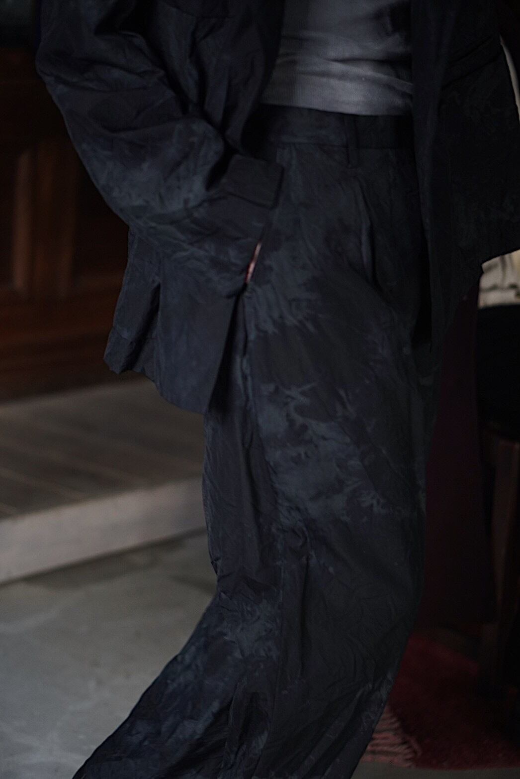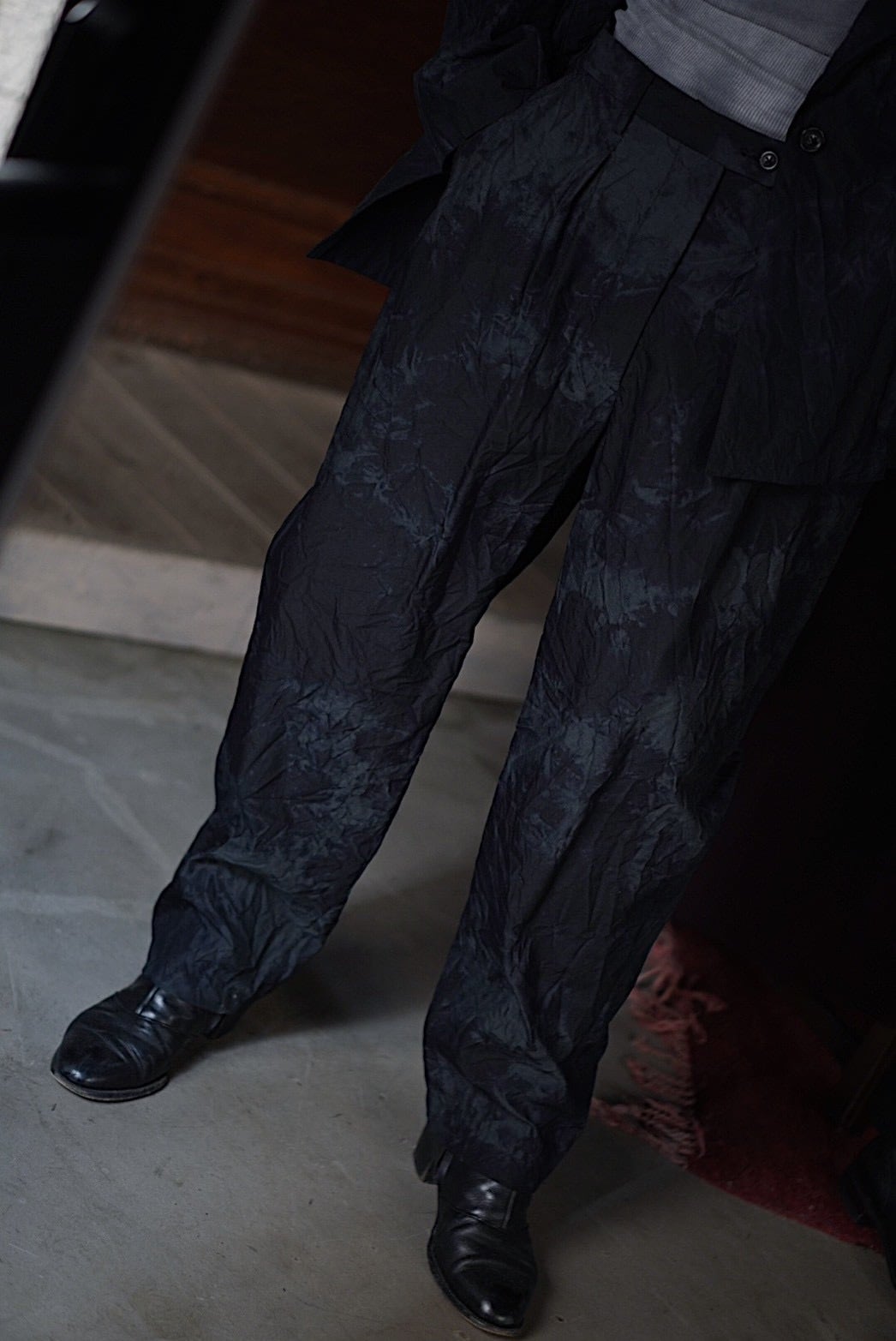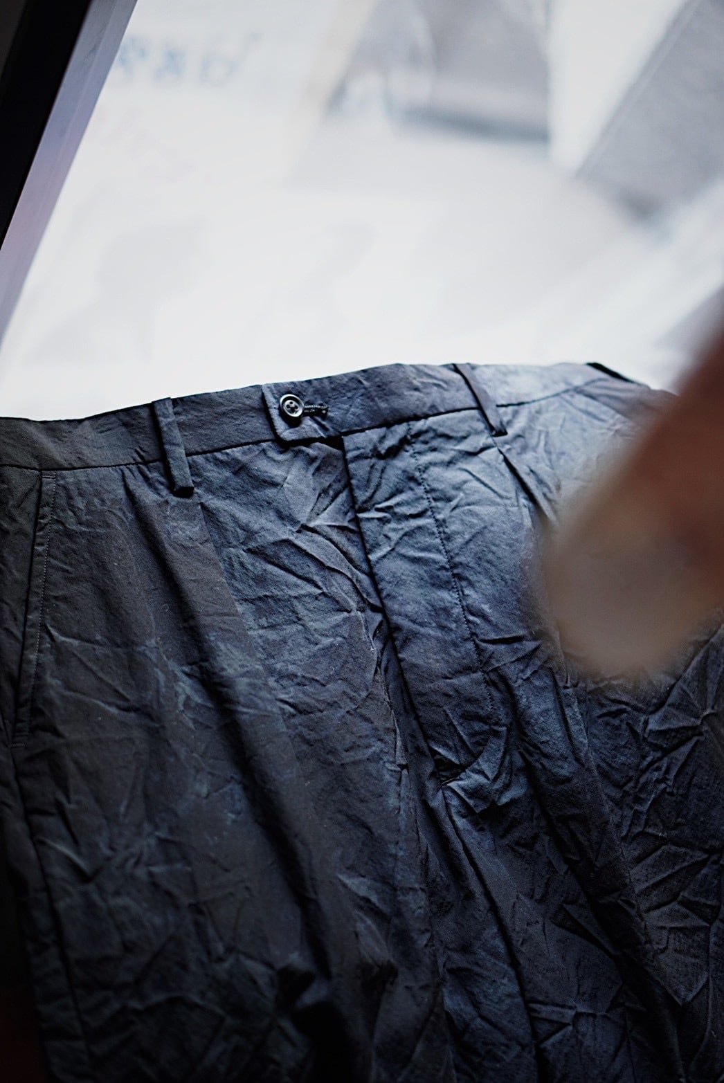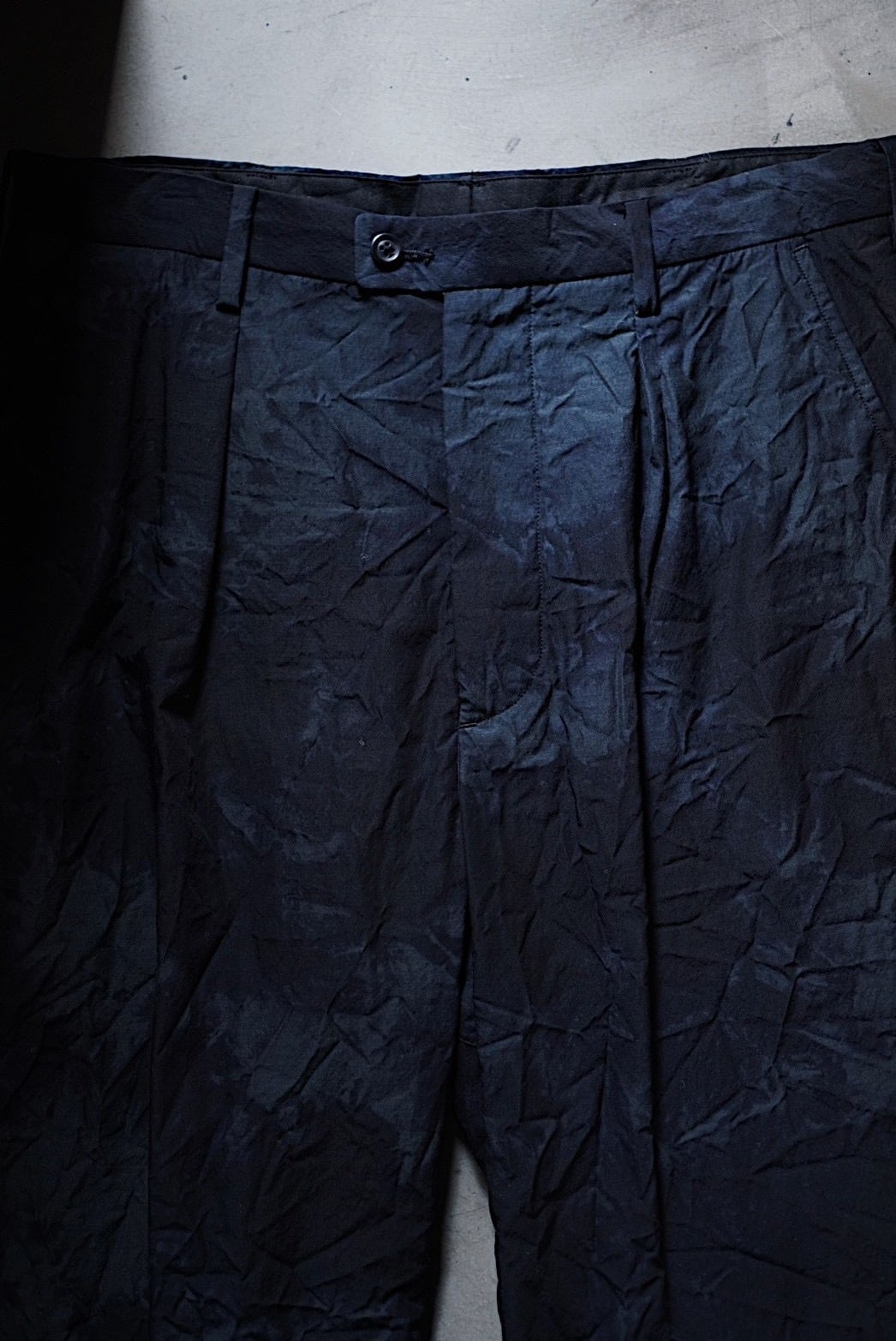 ドライタッチなシャリ感を持つテックウール生地で製作したワンタックトラウザー。型は1990年代のフレンチスラックスに見られるリラックスしたフォルムとイギリスのクラシックな仕立ての緻密さを掛け合わせています。