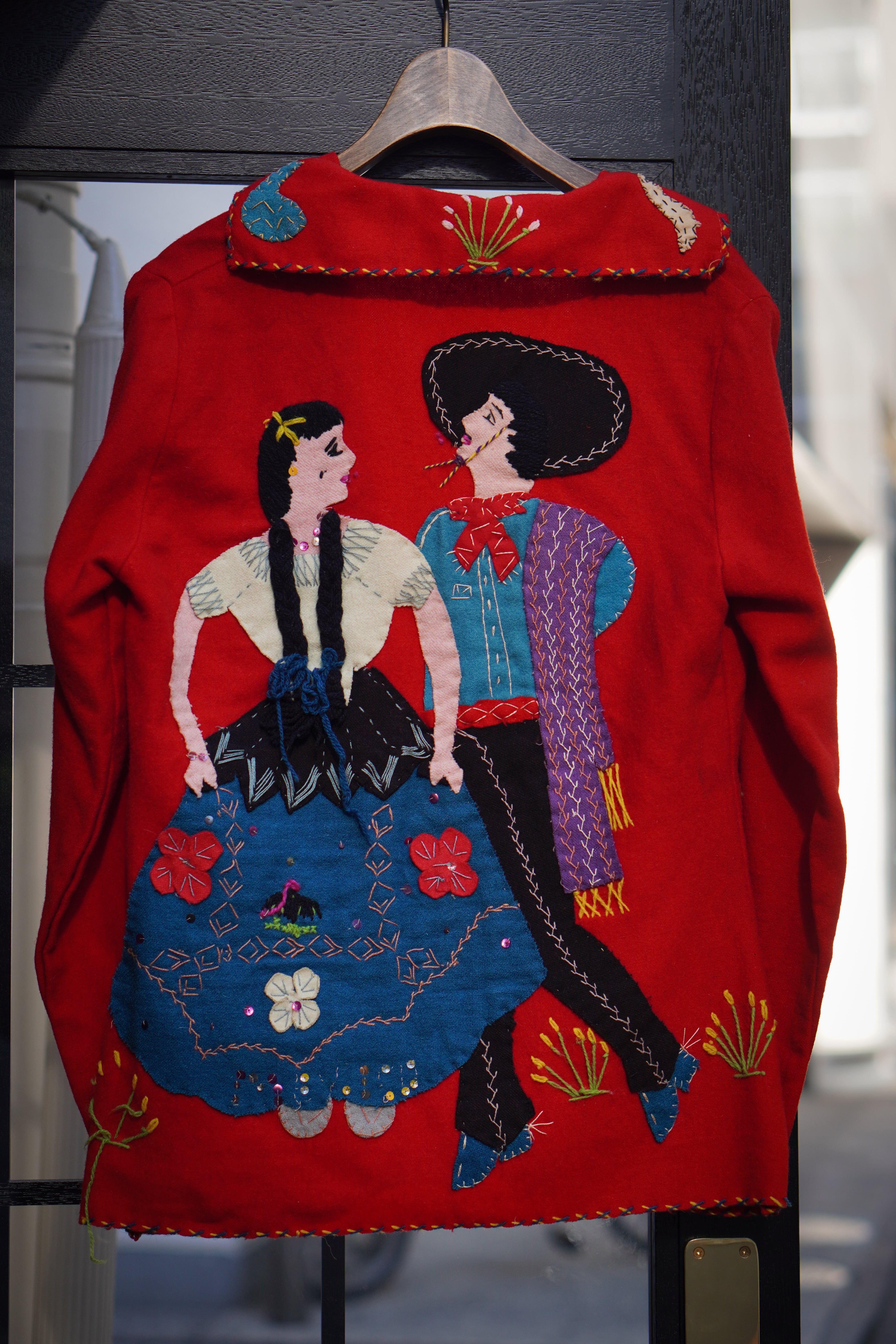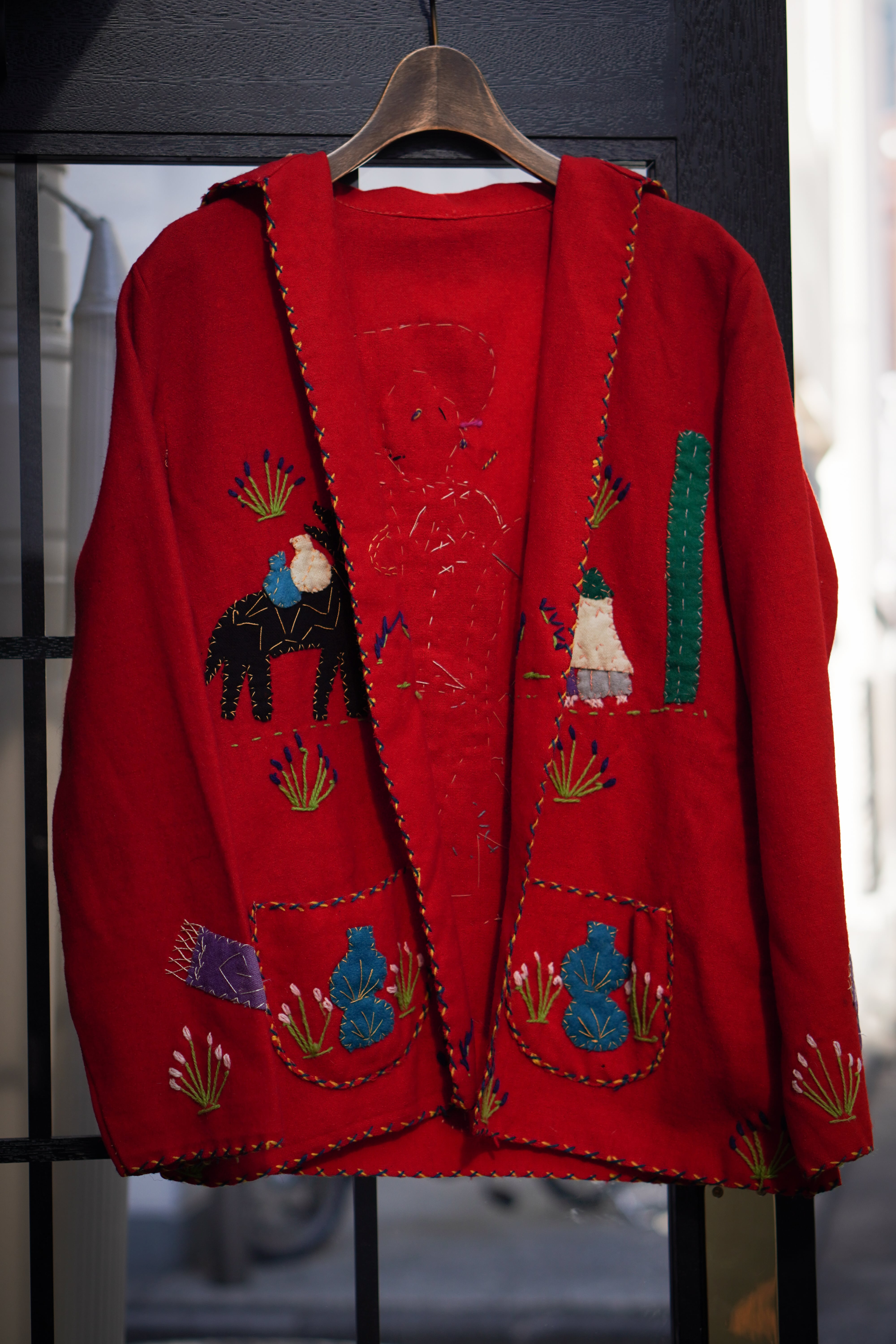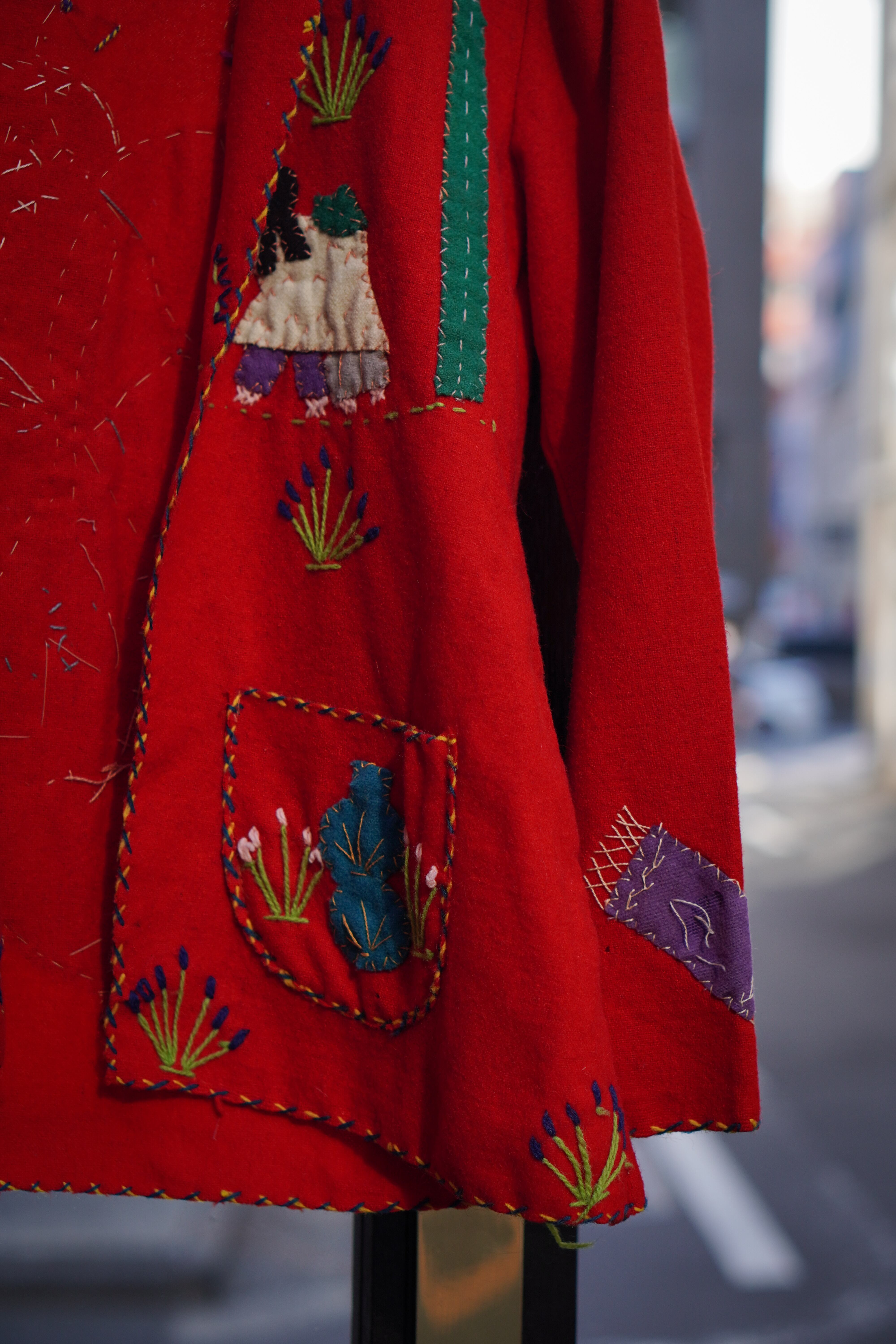 クロスステッチのパイピング。フェルトのようなウール素材もメキシカンジャケット特有でありハンドステッチならではの温もりが感じられる1着です。
